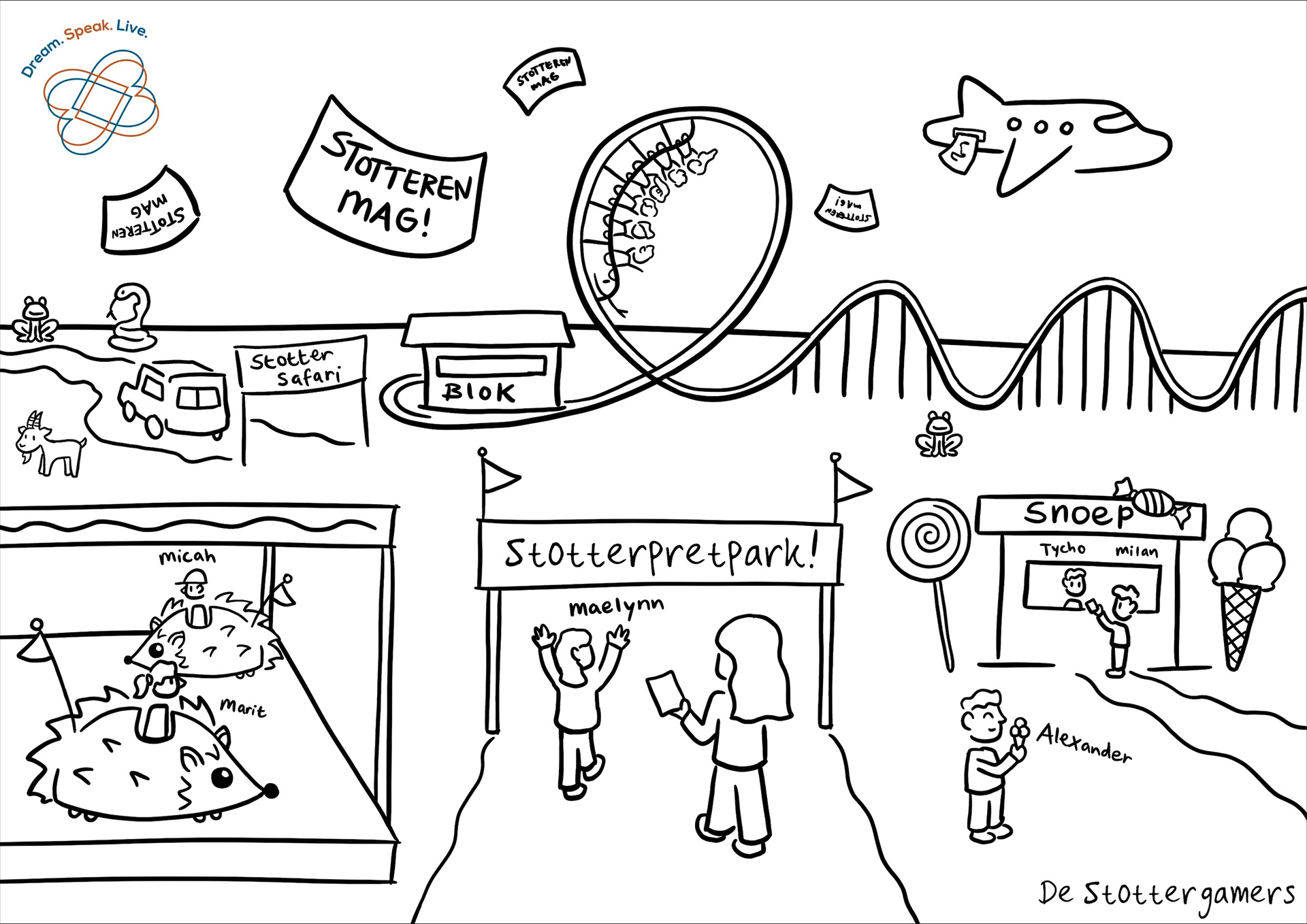 Live tekenen met kinderen op het stotterkamp - Camp Dream.Speak.Live.