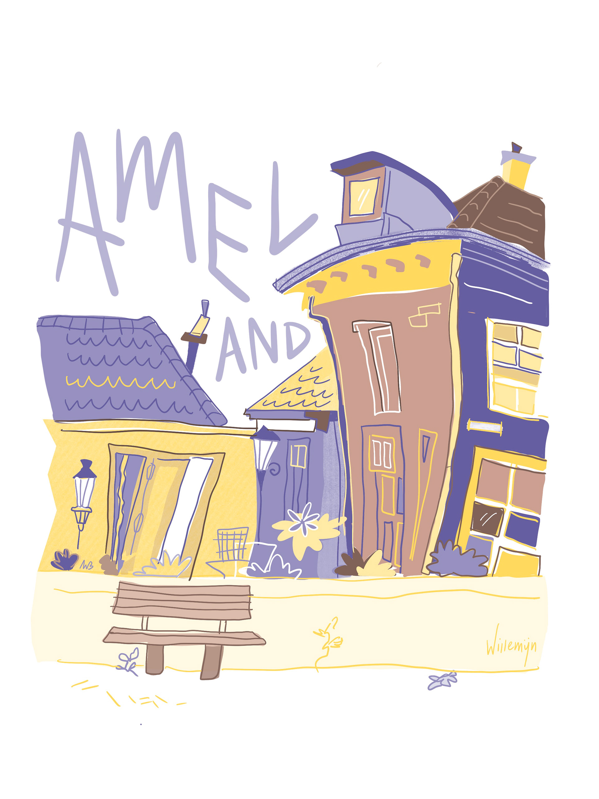 Een straat in Bergen, Noorwegen, gemaakt met zeefdruk